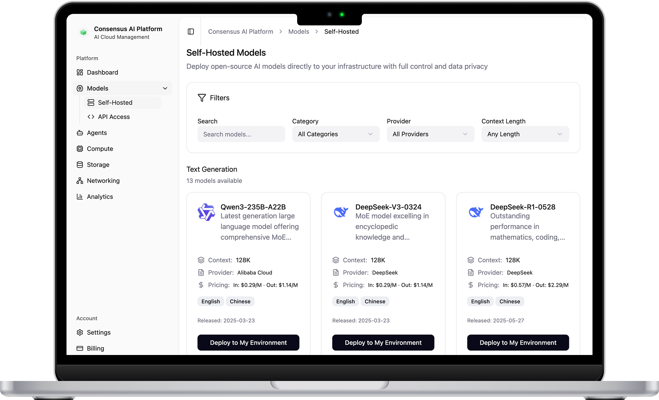 Deploy OpenAI, Llama, DeepSeek, or your own custom models. Kubernetes-native infrastructure with auto-scaling and built-in orchestration. Open platform that adapts to your requirements.